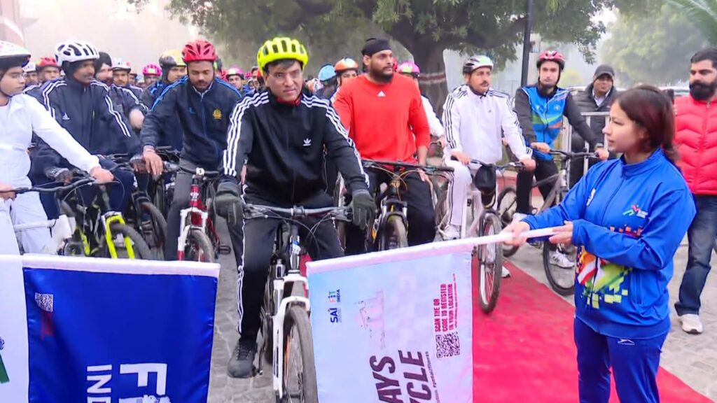 புதுதில்லி மேஜர் தியான்சந்த் தேசிய மைதானம் இன்று ஞாயிற்றுக்கிழமை காலை உடற்பயிற்சி மற்றும் உத்வேகத்தின் கொண்டாட்டமாக மாறியது. ஞாயிற்றுக்கிழமைகளில் நடைபெறும் ஃபிட் இந்தியா சைக்கிள் ஓட்டுதலின் சமீபத்திய பதிப்பில் ஆசிரியர்கள், விளையாட்டு வீரர்கள், உடற்பயிற்சி பிரியர்கள் உட்பட 750 பங்கேற்பாளர்கள் உற்சாகமாக பங்கேற்றனர்.