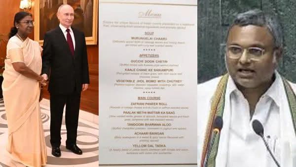 ரஷ்ய அதிபர் புதினுக்காக ராஷ்ட்ரபதி பவனில் அளிக்கப்பட்ட ராஜவிருந்தில் சைவ உணவுகள் மட்டுமே பரிமாறப்பட்டது. இது இந்திய உணவு கலாச்சாரத்தின் முழுமையை பிரதிபலிக்கிறதா என காங்கிரஸ் எம்.பி கார்த்தி சிதம்பரம் கேள்வி எழுப்பியது விவாதத்தை உருவாக்கியுள்ளது.